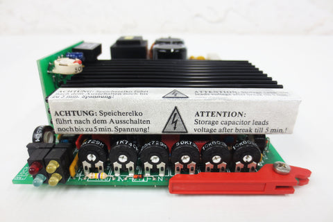 New in its original open box, inspected and functional. DC motor control card model EC20600-12 by EPH Elektronik Germany, part number 41-012983-00. ModV, 0.85A. Card measures 6 3/4 X 4 inches.