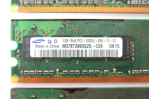 New, tested, guaranteed 30 days. 4 X 1GB memory RAM by Samsung. Specifications: DDR2, DIMM,  667MHz, PC2-5300U-555-12-ZZ, SODIMM, M378T2863QZS-CE6.